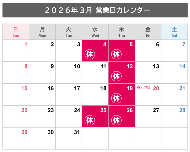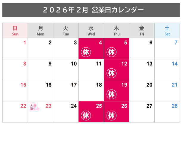 年末年始休業に関するお知らせ
